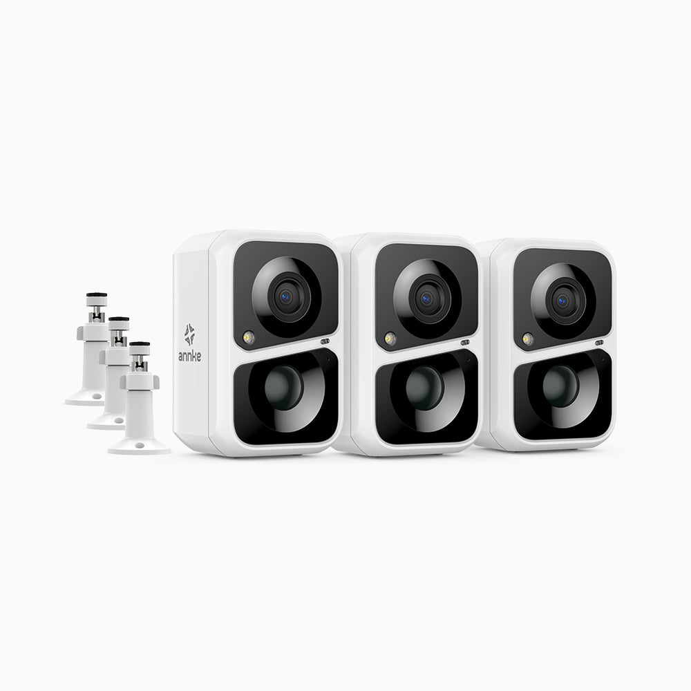 Custos - (3 Pack) 3MP WiFi Battery & Solar Powered Outdoor Security Camera, 4400mAh Rechargeable Battery, Siren & Strobe Alarm, Two-Way Audio, Cloud & Max. 128 GB Local Storage, Works with Alexa