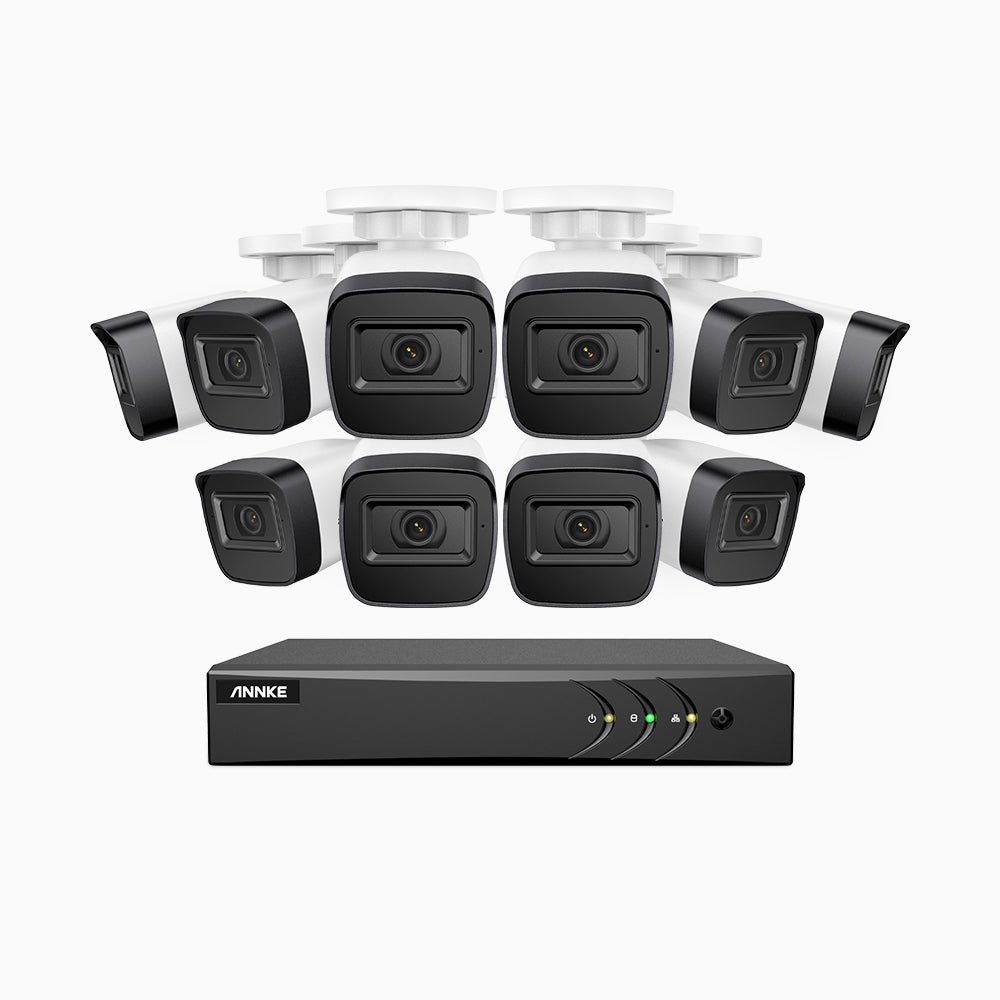 EL200 - 1080p 16 Channel Outdoor Wired Security CCTV System with 10 Cameras, 3.6 MM Lens, Smart DVR with Human & Vehicle Detection, 66 ft Infrared Night Vision, 4-in-1 Output Signal, IP67