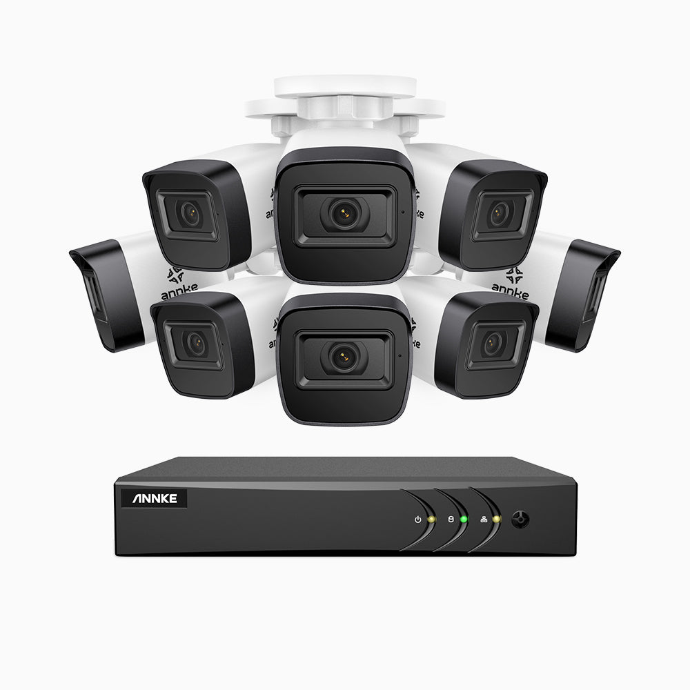 EL200 - 1080p 16 Channel Outdoor Wired Security CCTV System with 8 Cameras, 3.6 MM Lens, Smart DVR with Human & Vehicle Detection, 66 ft Infrared Night Vision, 4-in-1 Output Signal, IP67