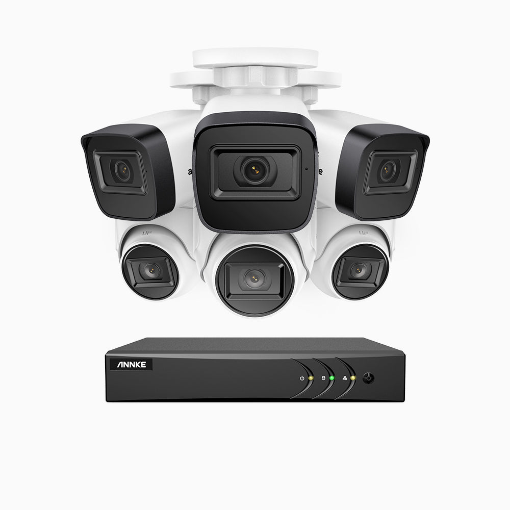 EL200 - 1080p 8 Channel Outdoor Wired Security CCTV System with 3 Bullet & 3 Turret Cameras, 3.6 MM Lens, Smart DVR with Human & Vehicle Detection, 66 ft Infrared Night Vision, 4-in-1 Output Signal, IP67