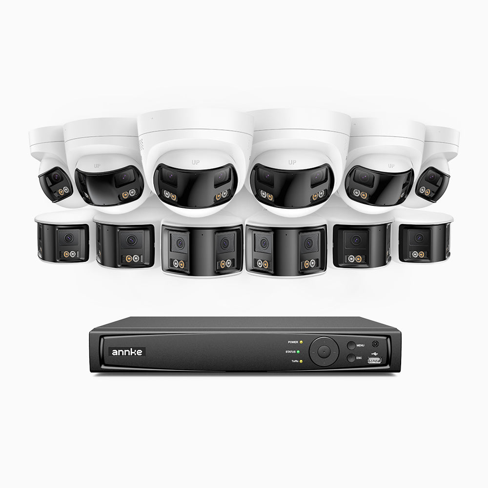 FDH800 - 16 Channel PoE Security System with 6 Bullet & 6 Turret 8MP UHD Dual Lens Cameras, 180° Panoramic View, Smart Dual Light Night Vision, Two-Way Audio, Active Siren & Alarm, Human & Vehicle Detection, IP67