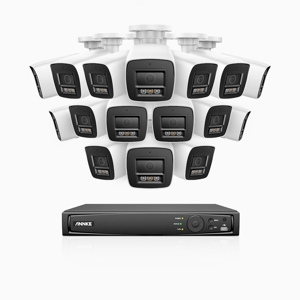H1200 - 4K 12MP 16 Channel 16 Cameras PoE Security System, Color & IR Night Vision, Human & Vehicle Detection, H.265+, Built-in Microphone, Max. 512 GB Local Storage, IP67
