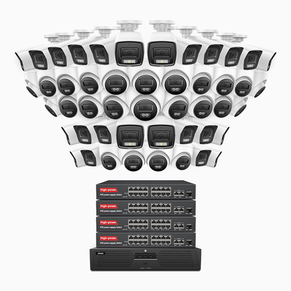 H1200 - 4K 12MP 64 Channel PoE Security System with 24 Bullet & 24 Turret Cameras, Color & IR Night Vision, Human & Vehicle Detection, H.265+, Built-in Microphone, Max. 512 GB Local Storage, IP67