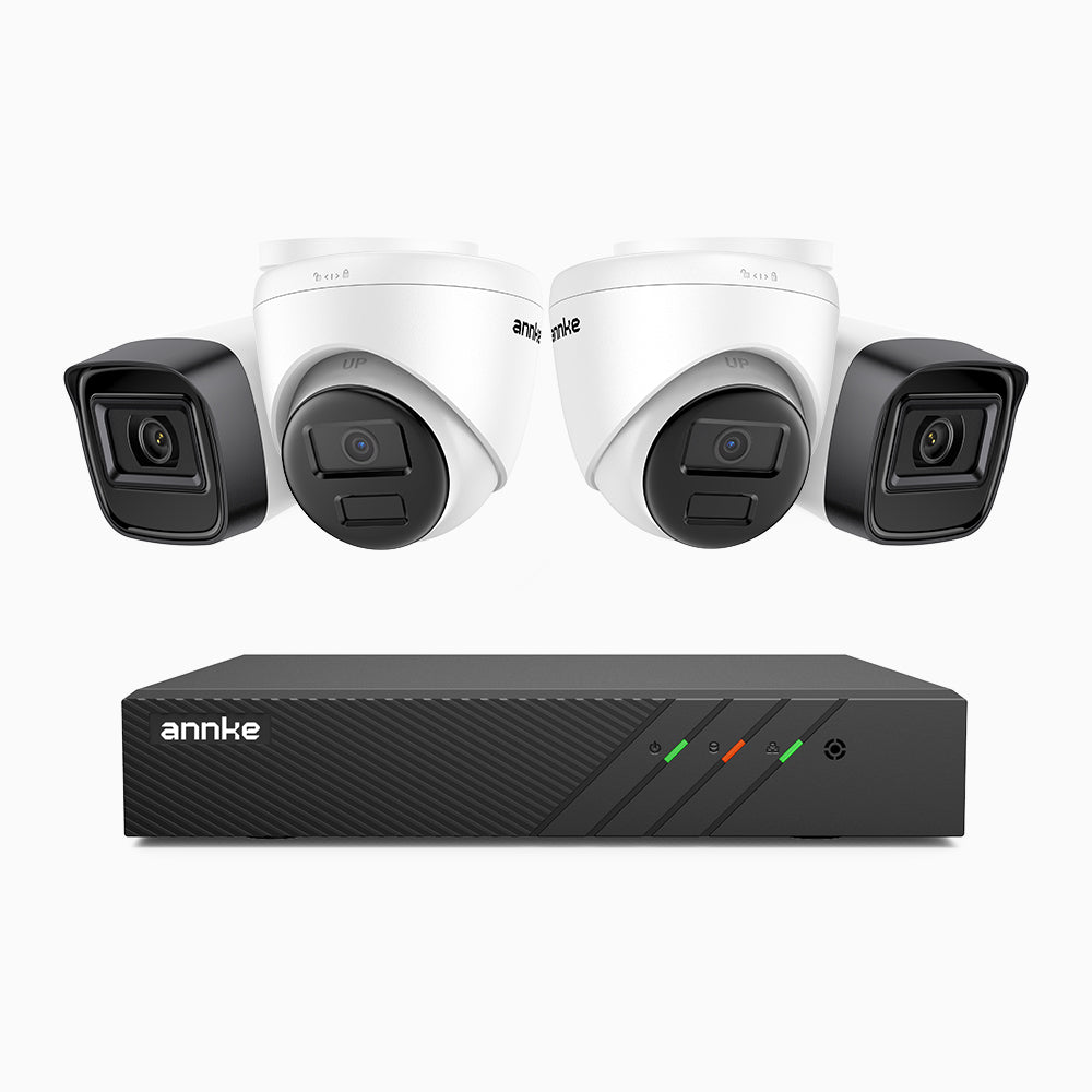 H300 - 2K 3MP 8 Channel PoE Security System with 2 Bullet & 2 Turret Cameras, EXIR 2.0 Night Vision, Motion Detection, H.265+, IP67 Waterproof