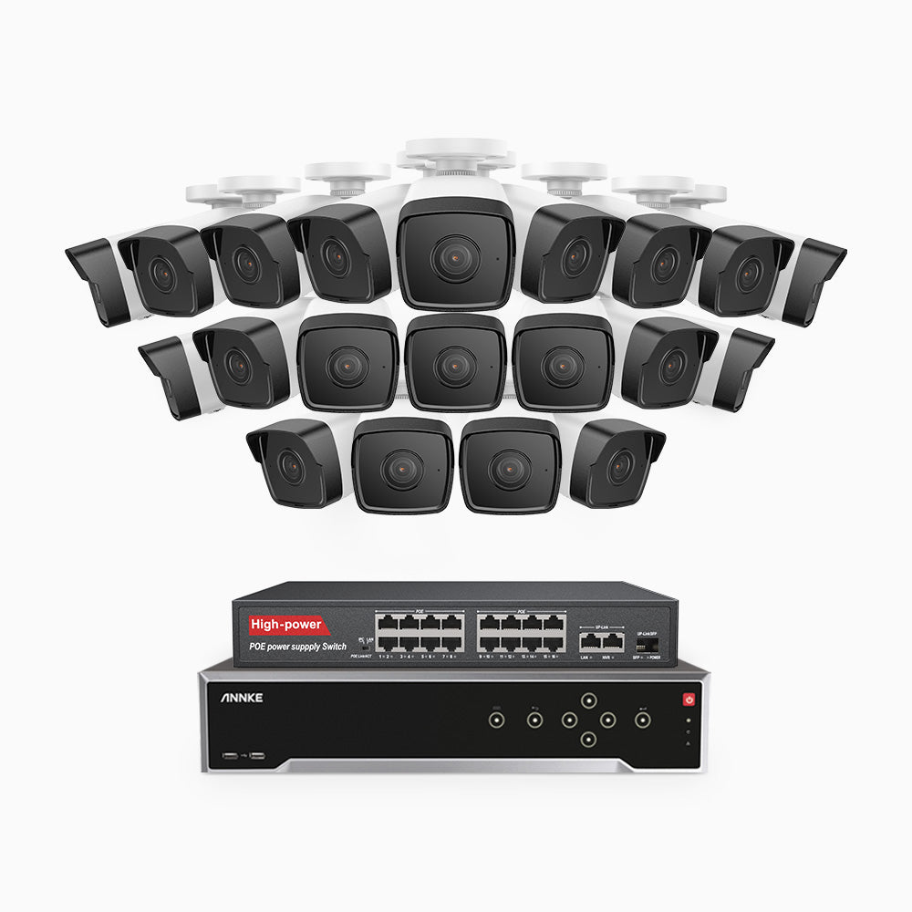 H500 - 3K 32 Channel 20 Cameras PoE Security System, EXIR 2.0 Night Vision, Built-in Mic & SD Card Slot, Works with Alexa, 16-Port PoE Switch Included ,IP67 Waterproof, RTSP Supported