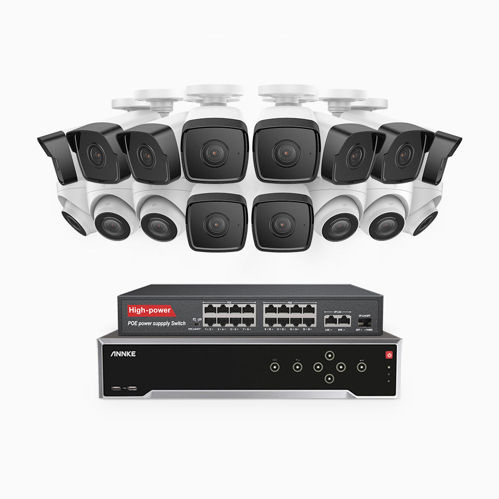 H500 - 3K 32 Channel PoE Security System with 10 Bullet & 6 Turret Cameras, EXIR 2.0 Night Vision, Built-in Mic & SD Card Slot, Works with Alexa, 16-Port PoE Switch Included ,IP67 Waterproof, RTSP Supported