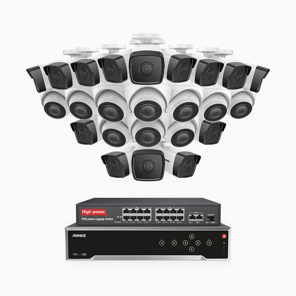 H500 - 3K 32 Channel PoE Security System with 14 Bullet & 10 Turret Cameras, EXIR 2.0 Night Vision, Built-in Mic & SD Card Slot, Works with Alexa, 16-Port PoE Switch Included ,IP67 Waterproof, RTSP Supported