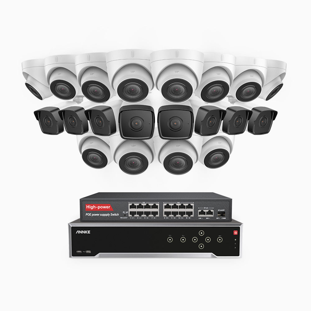 H500 - 3K 32 Channel PoE Security System with 8 Bullet & 12 Turret Cameras, EXIR 2.0 Night Vision, Built-in Mic & SD Card Slot, Works with Alexa, 16-Port PoE Switch Included ,IP67 Waterproof, RTSP Supported