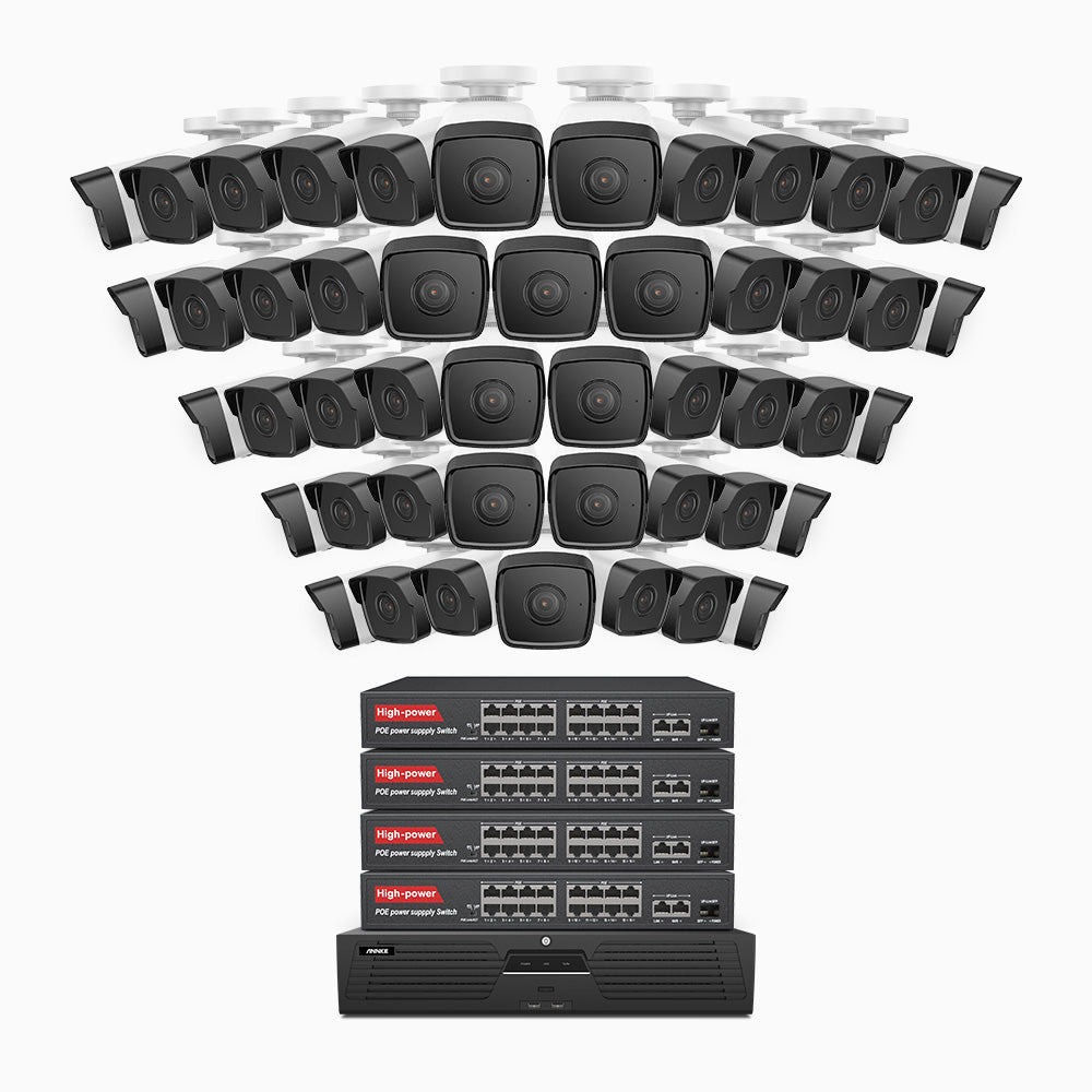 H500 - 3K 64 Channel 48 Cameras PoE Security System, EXIR 2.0 Night Vision, Built-in Mic & SD Card Slot, Works with Alexa, 16-Port PoE Switch Included ,IP67 Waterproof, RTSP Supported