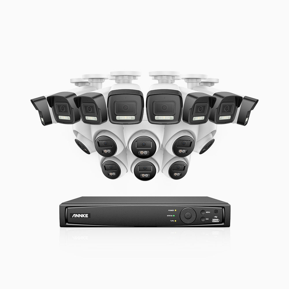 H500P - 3K 16 Channel PoE Security System with 8 Bullet & 8 Turret Cameras, Color & IR Night Vision, 3072*1728 Resolution, f/1.6 Aperture (0.005 Lux), Human & Vehicle Detection, Built-in Microphone,IP67