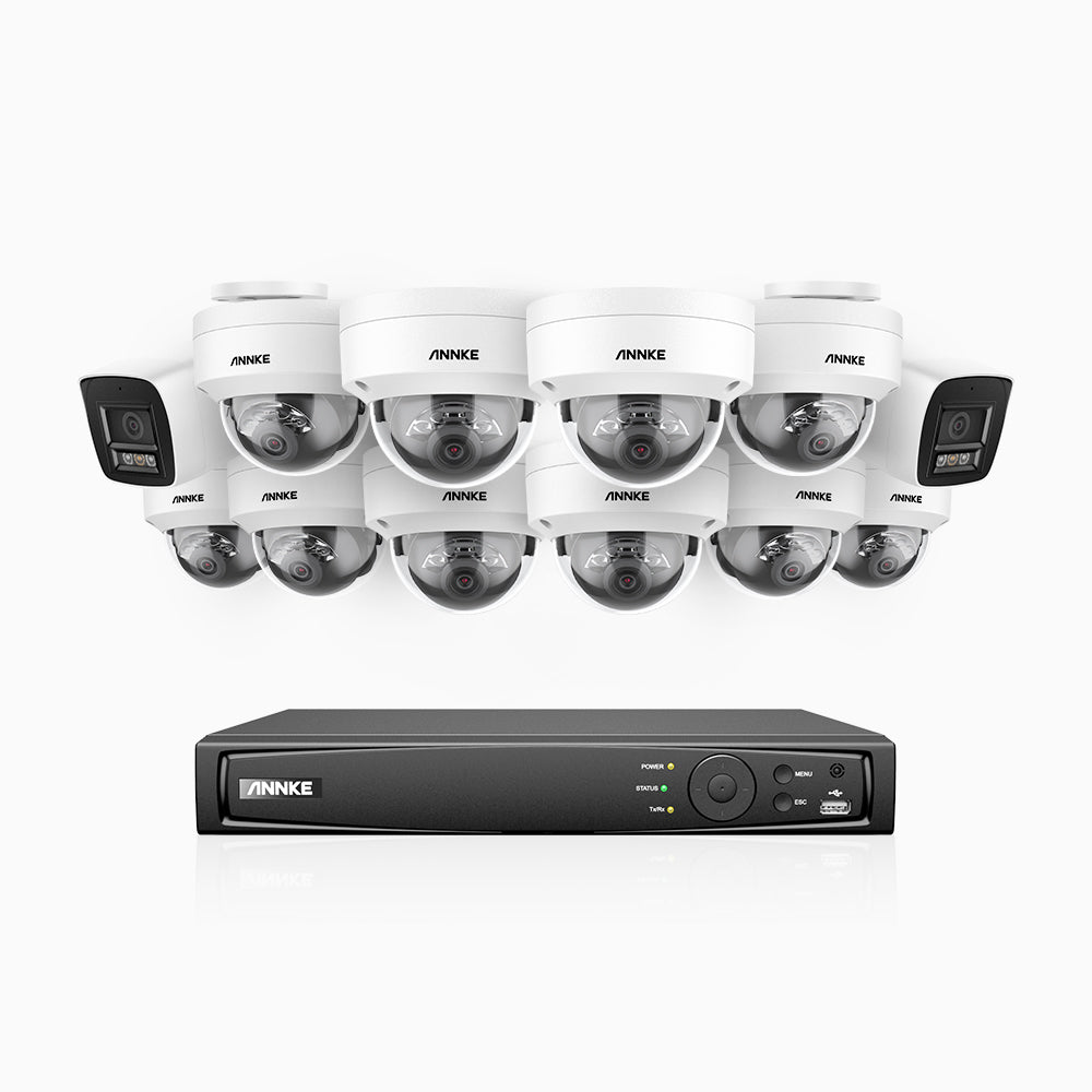 H800 - 4K 16 Channel PoE Security System with 2 Bullet & 10 Dome (IK10) Cameras, Vandal-Resistant, Human & Vehicle Detection, Color & IR Night Vision, Built-in Mic, RTSP Supported