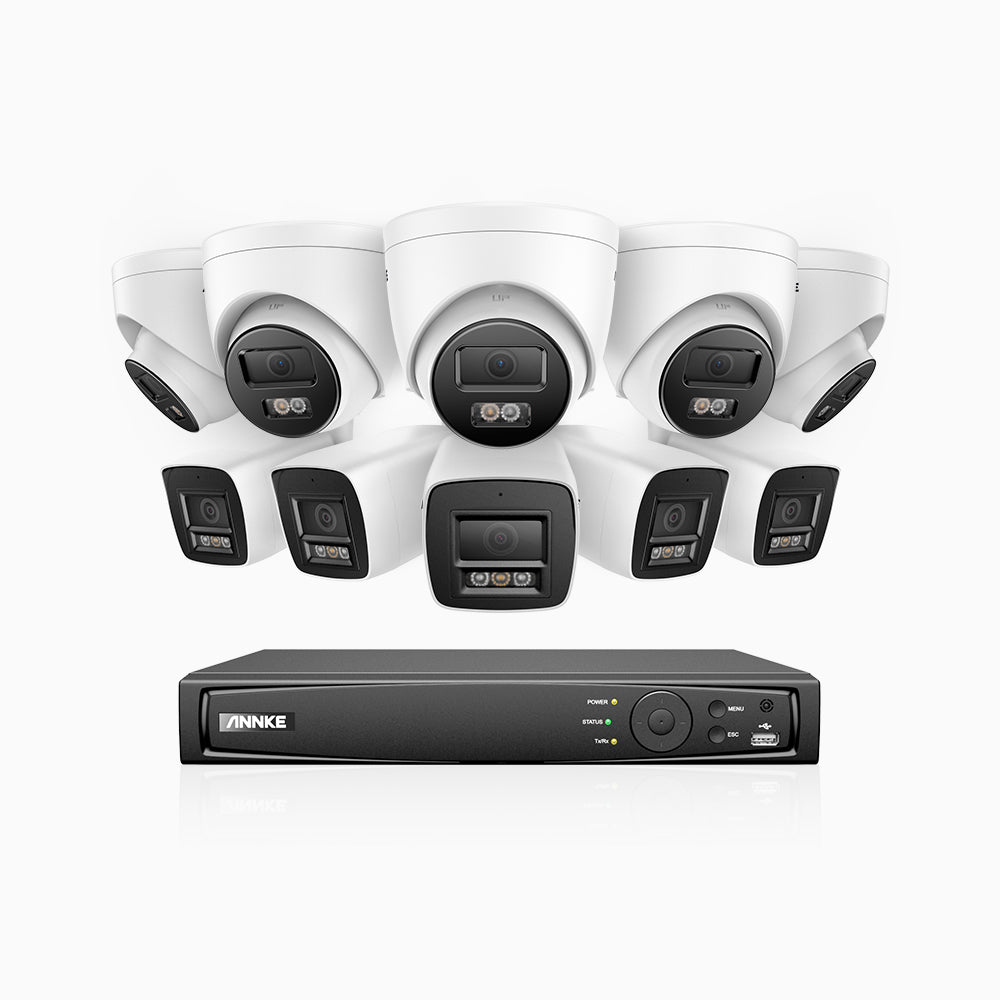 H800 - 4K 16 Channel PoE Security System with 5 Bullet & 5 Turret Cameras, Human & Vehicle Detection, Color & IR Night Vision, Built-in Mic, RTSP Supported