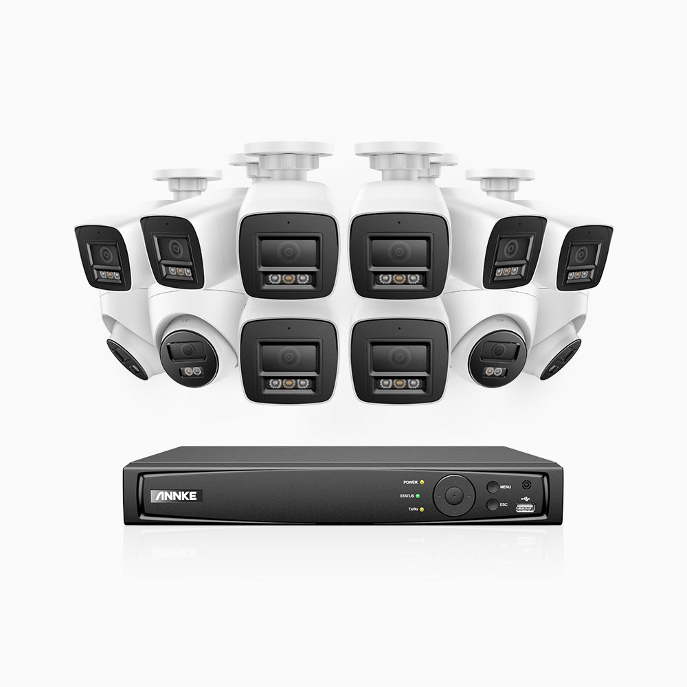 H800 - 4K 16 Channel PoE Security System with 8 Bullet & 4 Turret Cameras, Human & Vehicle Detection, Color & IR Night Vision, Built-in Mic, RTSP Supported