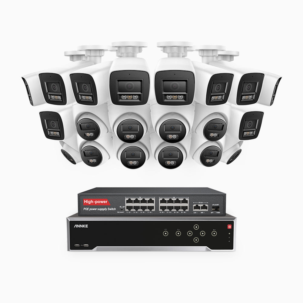 H800 - 4K 32 Channel PoE Security System with 10 Bullet & 10 Turret Cameras, Human & Vehicle Detection, Color & IR Night Vision, Built-in Mic, RTSP Supported, 16-Port PoE Switch Included