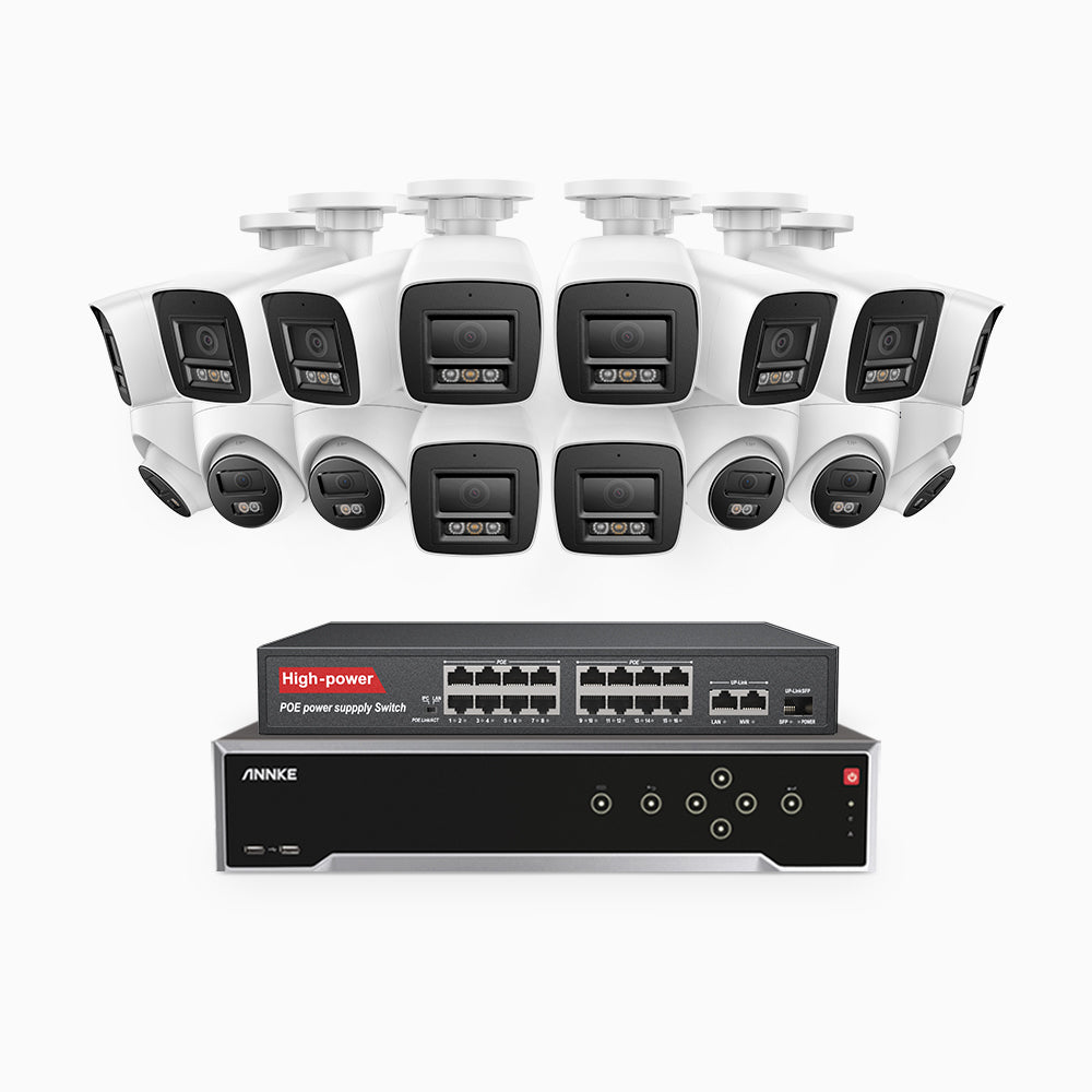 H800 - 4K 32 Channel PoE Security System with 10 Bullet & 6 Turret Cameras, Human & Vehicle Detection, Color & IR Night Vision, Built-in Mic, RTSP Supported, 16-Port PoE Switch Included