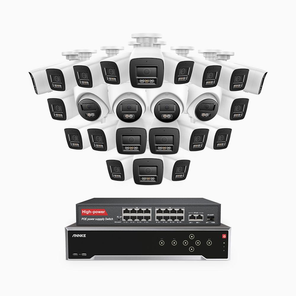 H800 - 4K 32 Channel PoE Security System with 20 Bullet & 4 Turret Cameras, Human & Vehicle Detection, Color & IR Night Vision, Built-in Mic, RTSP Supported, 16-Port PoE Switch Included
