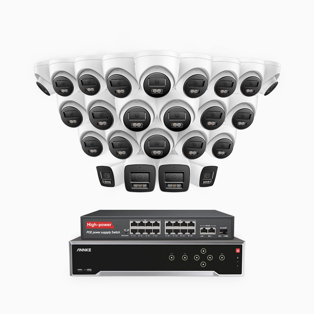 H800 - 4K 32 Channel PoE Security System with 4 Bullet & 20 Turret Cameras, Human & Vehicle Detection, Color & IR Night Vision, Built-in Mic, RTSP Supported, 16-Port PoE Switch Included