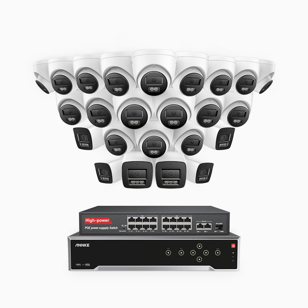 H800 - 4K 32 Channel PoE Security System with 6 Bullet & 18 Turret Cameras, Human & Vehicle Detection, Color & IR Night Vision, Built-in Mic, RTSP Supported, 16-Port PoE Switch Included