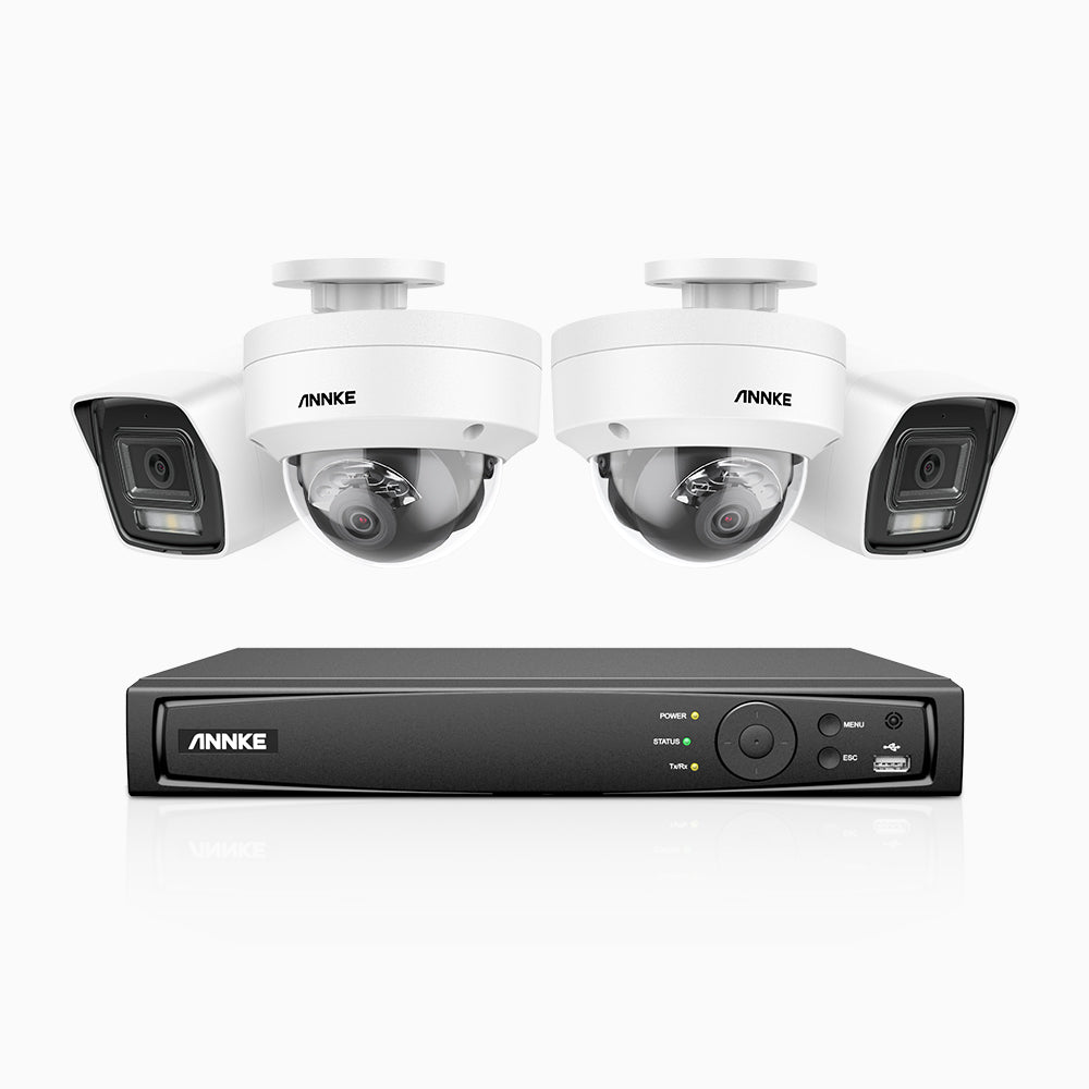 H800 - 4K 4 Channel PoE Security System with 2 Bullet & 2 Dome (IK10) Cameras, Vandal-Resistant, Human & Vehicle Detection, Built-in Mic, RTSP Supported