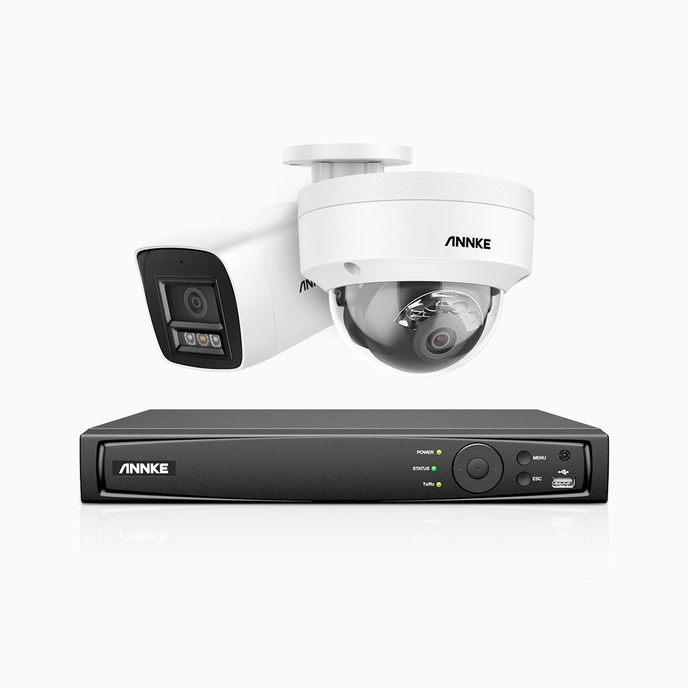 H800 - 4K 8 Channel PoE Security System with 1 Bullet & 1 Dome (IK10) Cameras, Vandal-Resistant, Human & Vehicle Detection, Built-in Mic, RTSP Supported