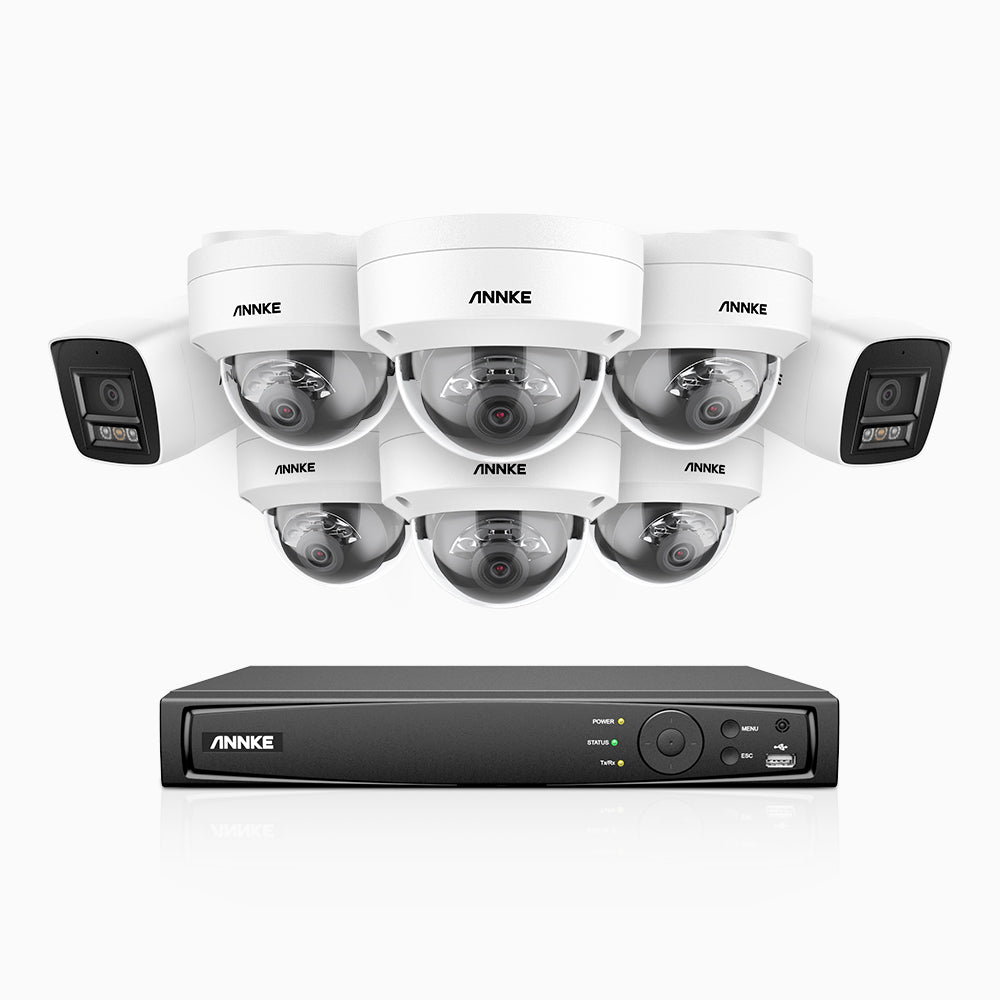 H800 - 4K 8 Channel PoE Security System with 2 Bullet & 6 Dome (IK10) Cameras, Vandal-Resistant, Human & Vehicle Detection, Built-in Mic, RTSP Supported