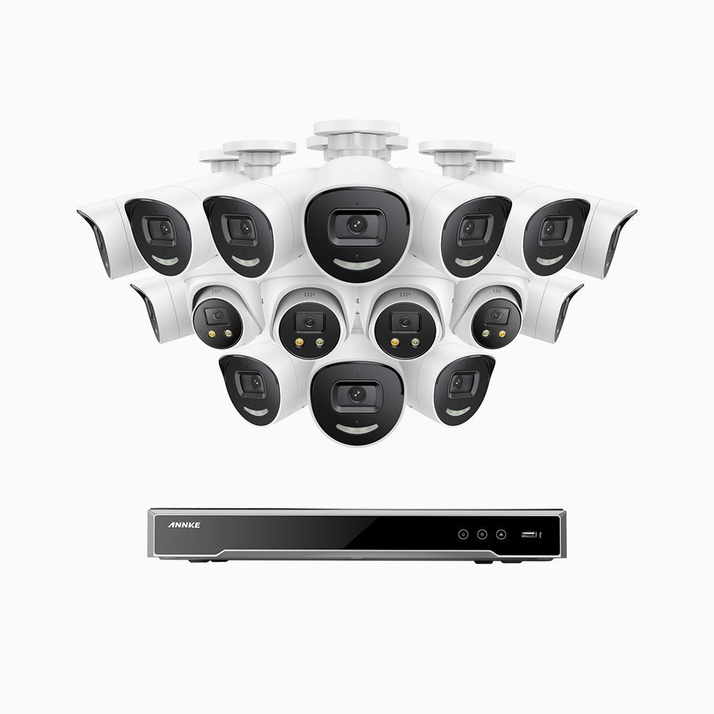 H800X - 4K 16 Channel PoE Security System with 12 Bullet & 4 Turret Cameras, 1/1.8'' BSI Sensor, f/1.6 Aperture (0.003 Lux), Siren & Strobe Alarm,Two-Way Audio, Human & Vehicle Detection, Perimeter Protection, Works with Alexa