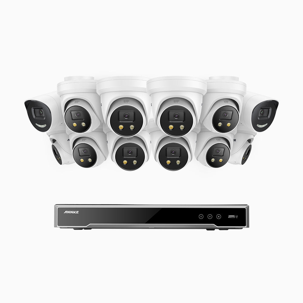 H800X - 4K 16 Channel PoE Security System with 2 Bullet & 10 Turret Cameras, 1/1.8'' BSI Sensor, f/1.6 Aperture (0.003 Lux), Siren & Strobe Alarm,Two-Way Audio, Human & Vehicle Detection, Perimeter Protection, Works with Alexa