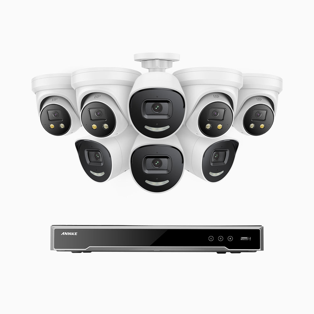 H800X - 4K 16 Channel PoE Security System with 4 Bullet & 4 Turret Cameras, 1/1.8'' BSI Sensor, f/1.6 Aperture (0.003 Lux), Siren & Strobe Alarm,Two-Way Audio, Human & Vehicle Detection, Perimeter Protection, Works with Alexa