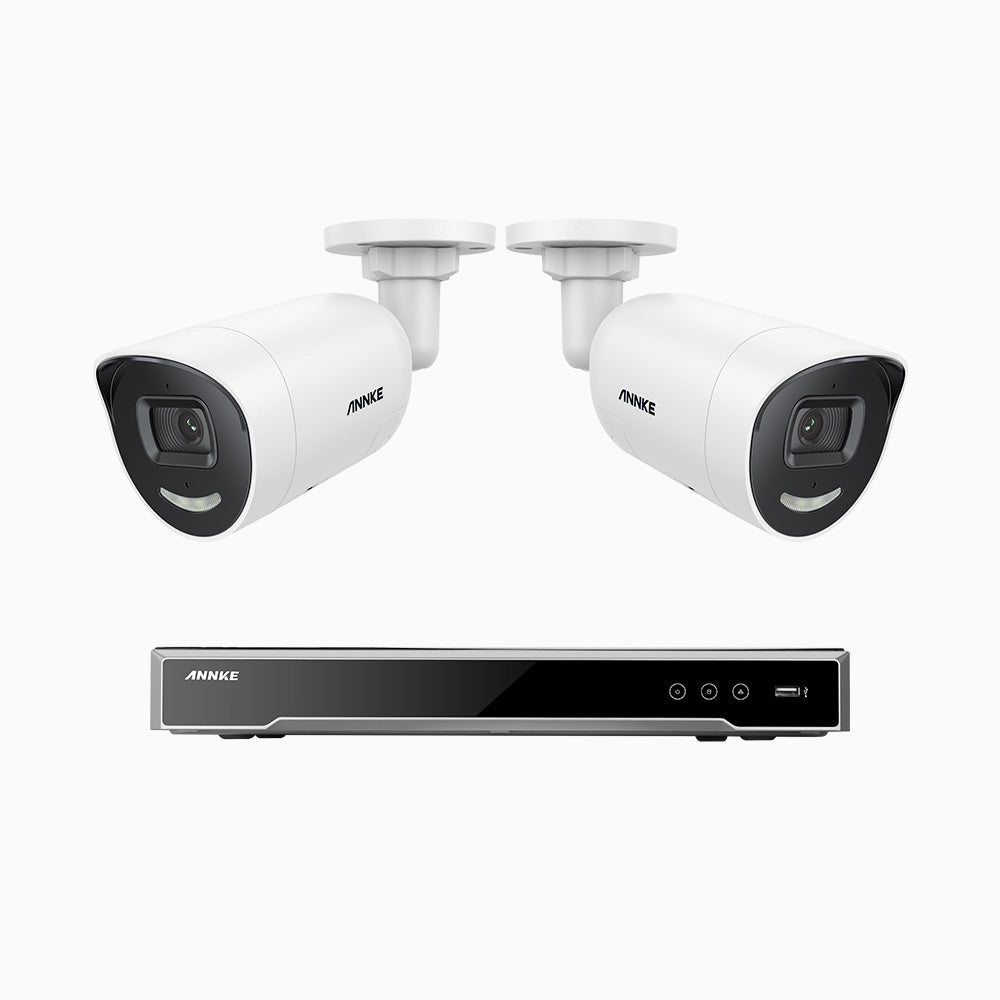 H800X - 4K 8 Channel 2 Cameras PoE Security System, 1/1.8'' BSI Sensor, f/1.6 Aperture (0.003 Lux), Siren & Strobe Alarm,Two-Way Audio, Human & Vehicle Detection, Perimeter Protection, Works with Alexa