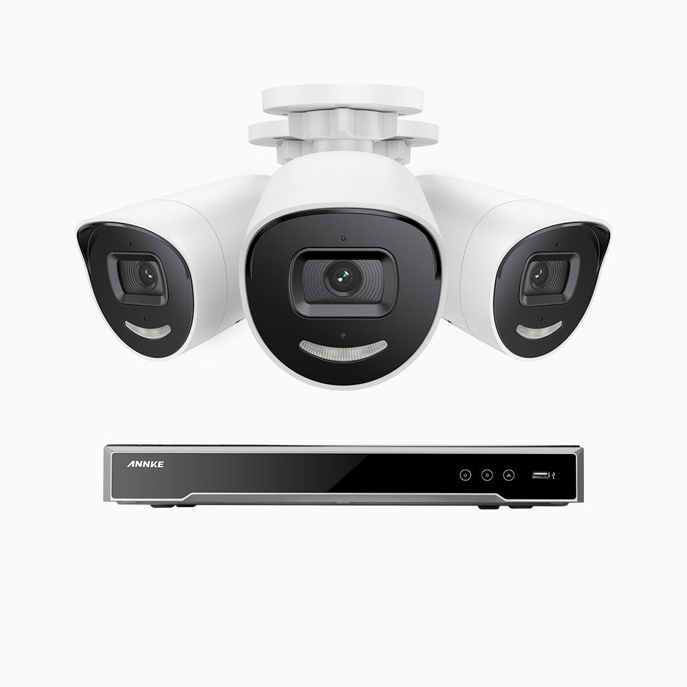 H800X - 4K 8 Channel 3 Cameras PoE Security System, 1/1.8'' BSI Sensor, f/1.6 Aperture (0.003 Lux), Siren & Strobe Alarm,Two-Way Audio, Human & Vehicle Detection, Perimeter Protection, Works with Alexa