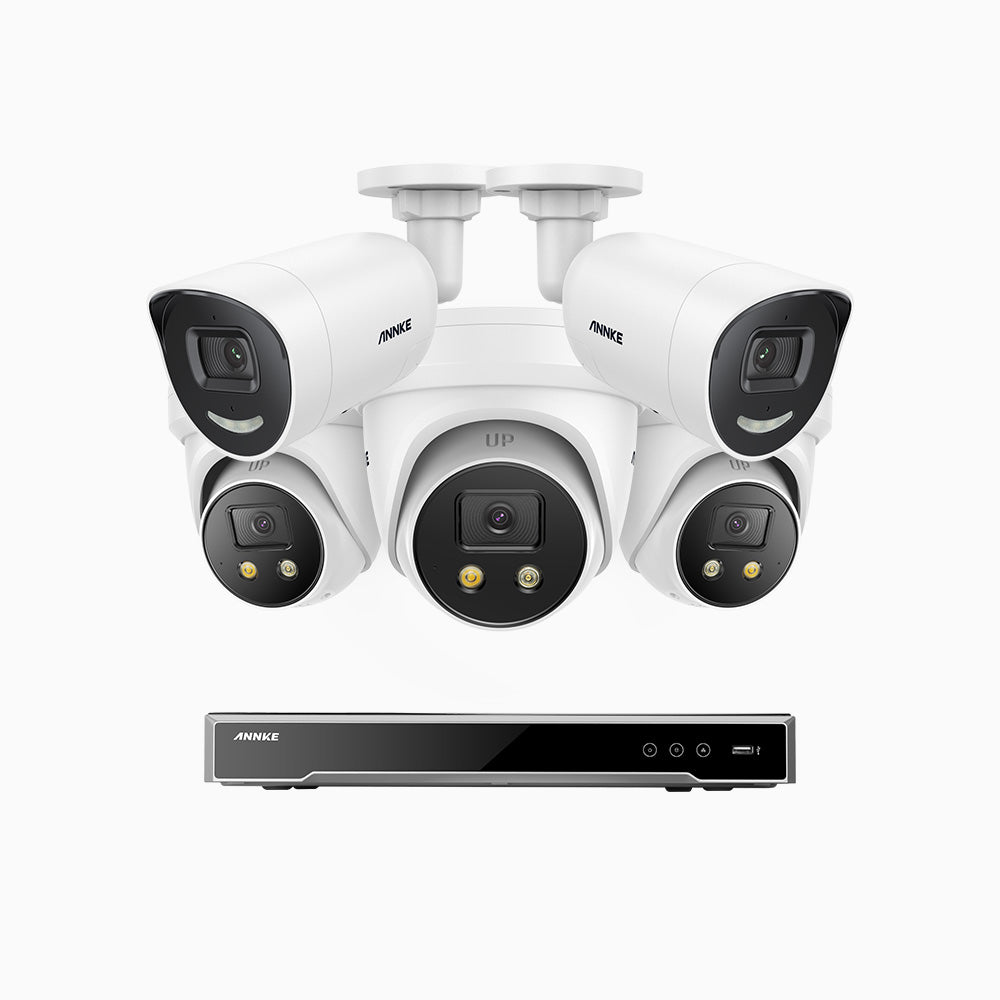 H800X - 4K 8 Channel PoE Security System with 2 Bullet & 3 Turret Cameras, 1/1.8'' BSI Sensor, f/1.6 Aperture (0.003 Lux), Siren & Strobe Alarm,Two-Way Audio, Human & Vehicle Detection, Perimeter Protection, Works with Alexa