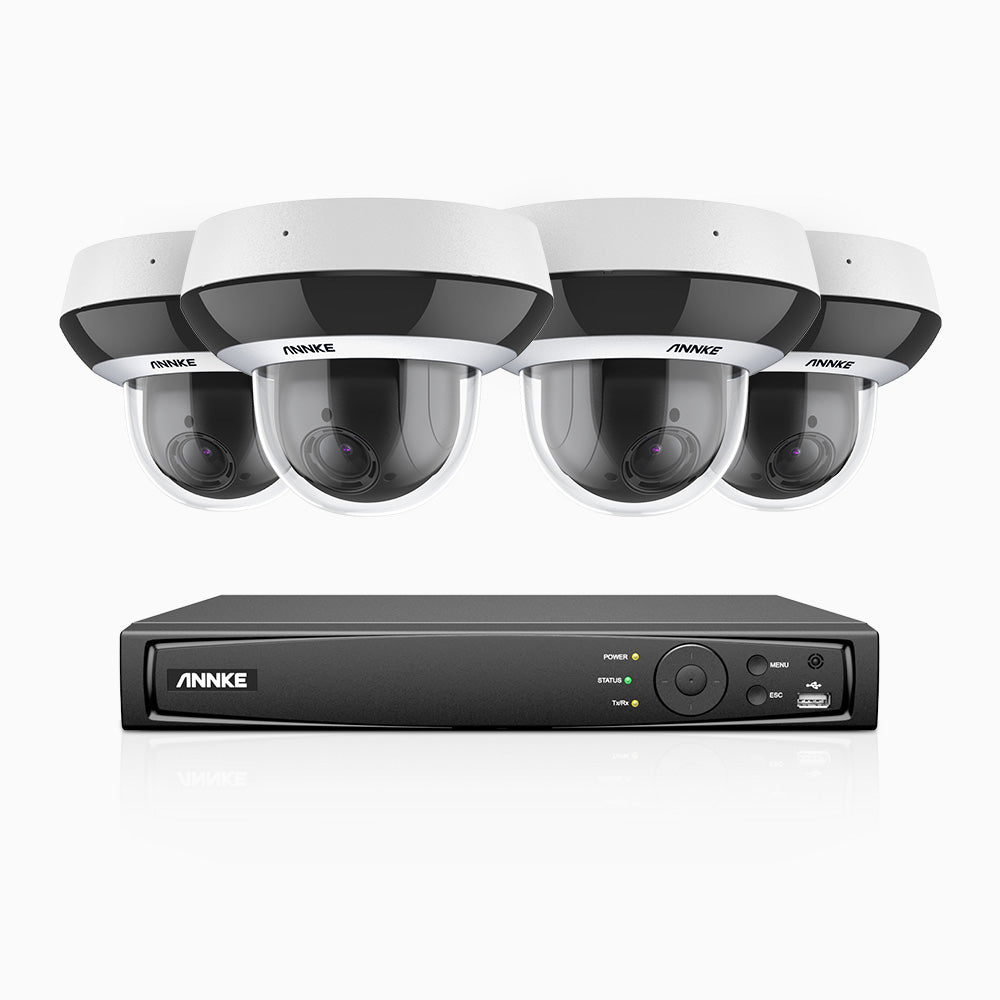 HZ504P - 8 Channel 4 Cameras PTZ PoE Security System, 3K Super HD, 4X Optical Zoom, IK10 & IP67, 2.8-12 mm Lens, Intelligent Behavior Analysis, Color Night Vision & Anti-Fog