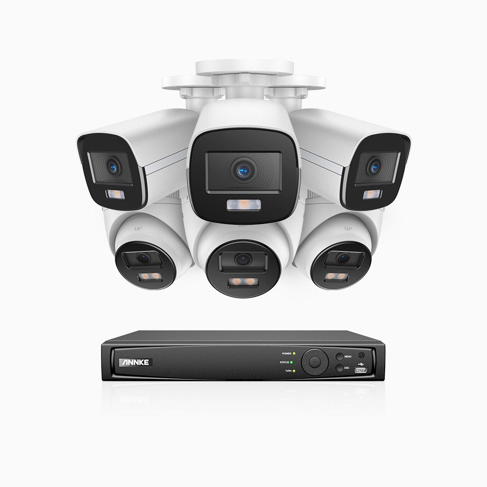 NightChromaTM NCK500 - 3K 8 Channel PoE Security System with 3 Bullet & 3 Turret Cameras, Acme Color Night Vision, f/1.0 Super Aperture, Active Alignment, Built-in Microphone, IP67