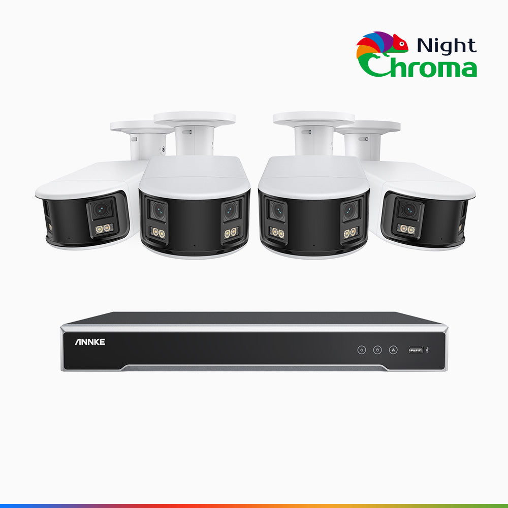 NightChromaTM NDK800 – 4K 8 Channel 4 Panoramic Dual Lens Cameras PoE Security System, f/1.0 Super Aperture, Acme Color Night Vision, Active Siren and Strobe, Human & Vehicle Detection, 2CH 4K Decoding Capability, Built-in Mic ,Two-Way Audio