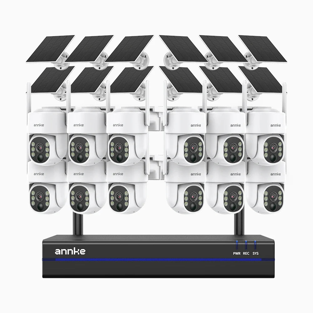 WBS400 - 4MP 16 Channel 12 Battery Cameras Outdoor Wireless NVR Security System, 2.4G & 5.8G Dual-Band WiFi, Motion Detection, Two-Way Audio, Battery & Solar Powered, 270° Pan & 90° Tilt, Cloud & Max. 256 GB Local Storage, Works with Alexa