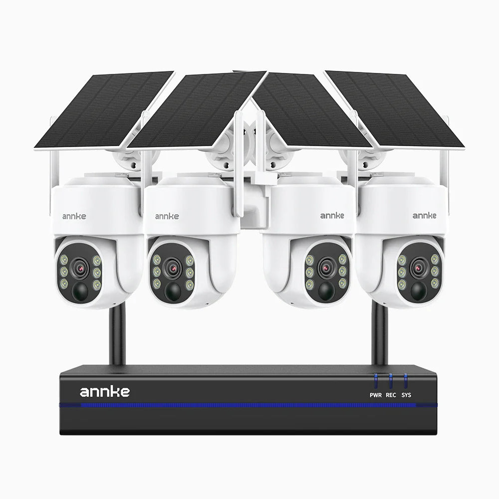 WBS400 - 4MP 8 Channel 4 Battery Cameras Outdoor Wireless NVR Security System, 2.4G & 5.8G Dual-Band WiFi, Motion Detection, Two-Way Audio, Battery & Solar Powered, 270° Pan & 90° Tilt, loud & Max. 256 GB Local Storage, Works with Alexa
