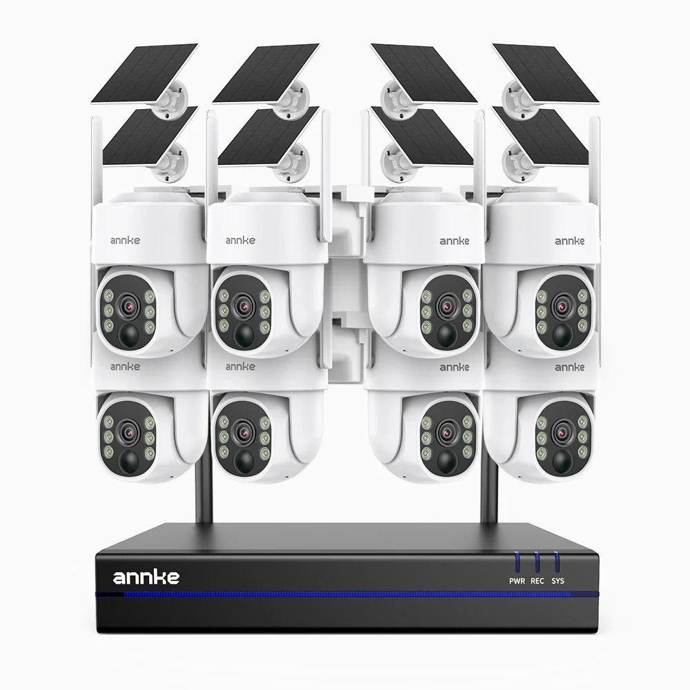 WBS400 - 4MP 8 Channel 8 Battery Cameras Outdoor Wireless NVR Security System, 2.4G & 5.8G Dual-Band WiFi, Motion Detection, Two-Way Audio, Battery & Solar Powered, 270° Pan & 90° Tilt, Cloud & Max. 256 GB Local Storage, Works with Alexa